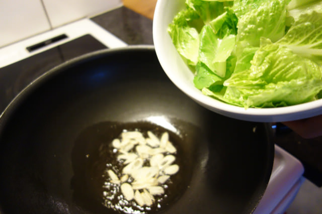 Tillsätt romansalladen och woka i 3-5 minuter.
