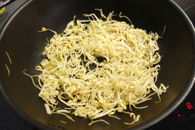 Skölj groddarna (250 g) och låt droppa av.